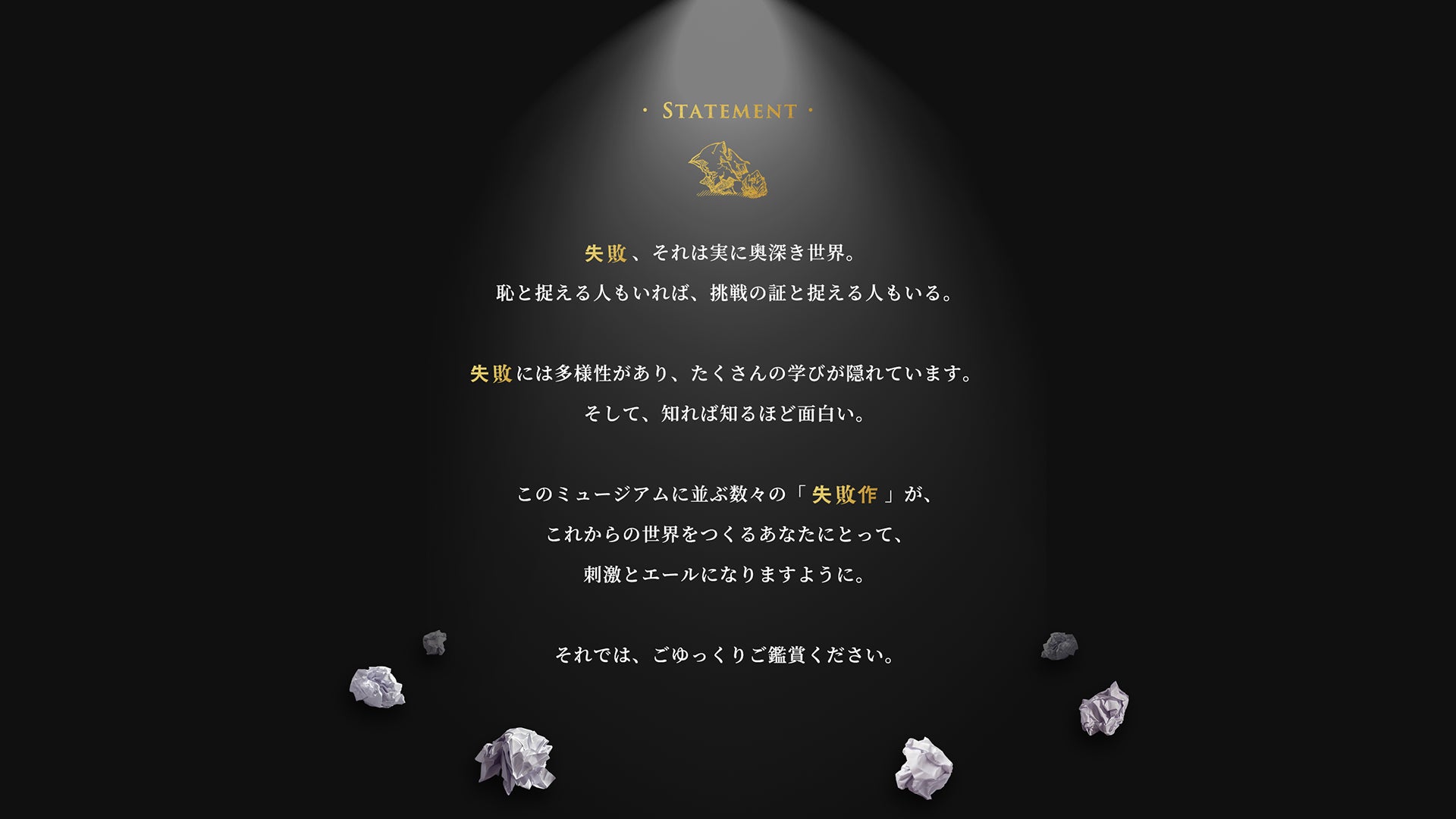 失敗作ミュージアムはそんなDHU在学生・卒業生の多様性に溢れる失敗作品を鑑賞することで、「失敗を挑戦の証と捉え、デジタル社会で自ら創造して欲しい」というDHUからのメッセージを体感できるコンテンツとなっています。