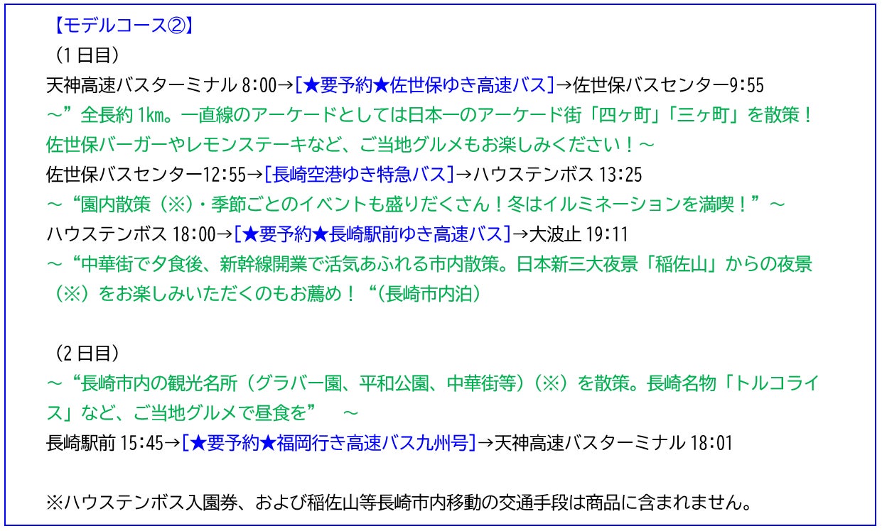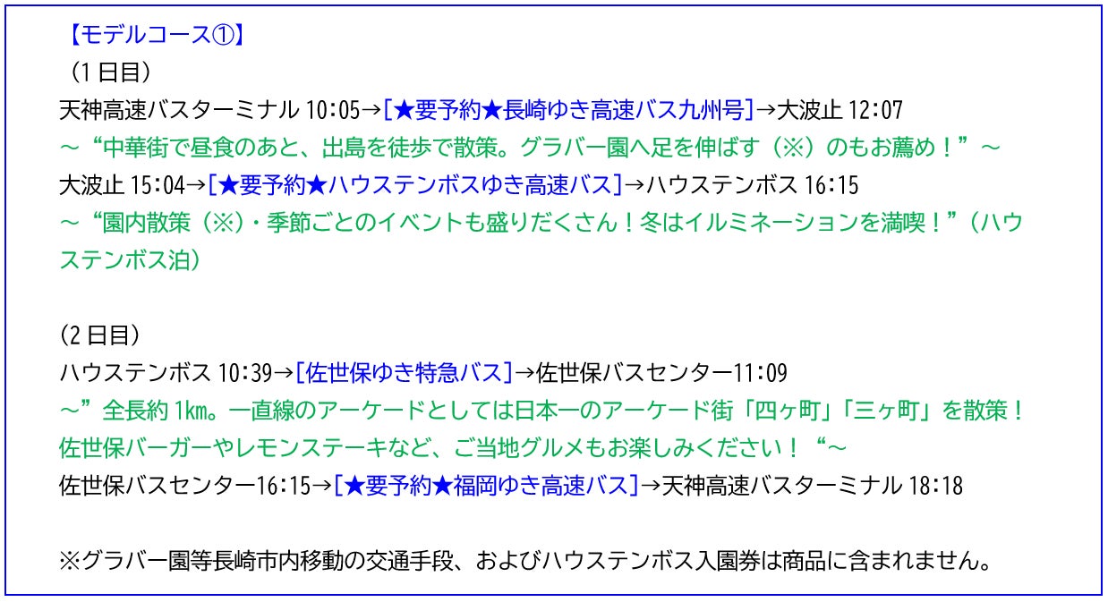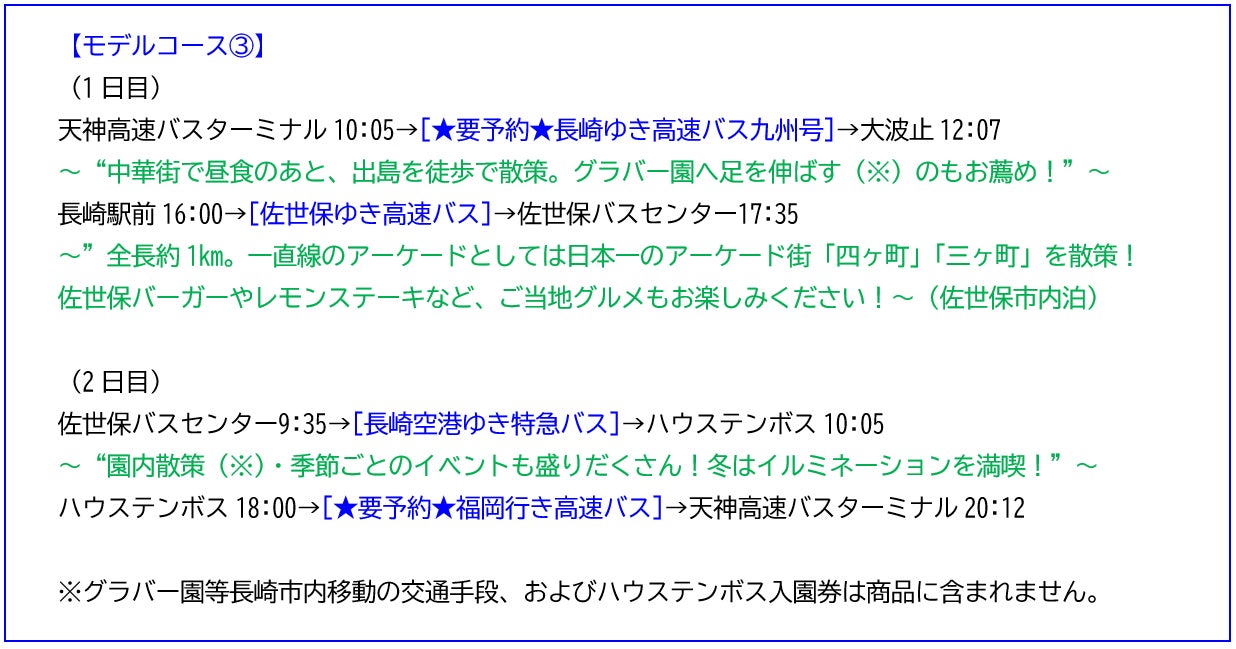 【「とりっぷきっぷ長崎・佐世保・ハウステンボス」モデルコース】