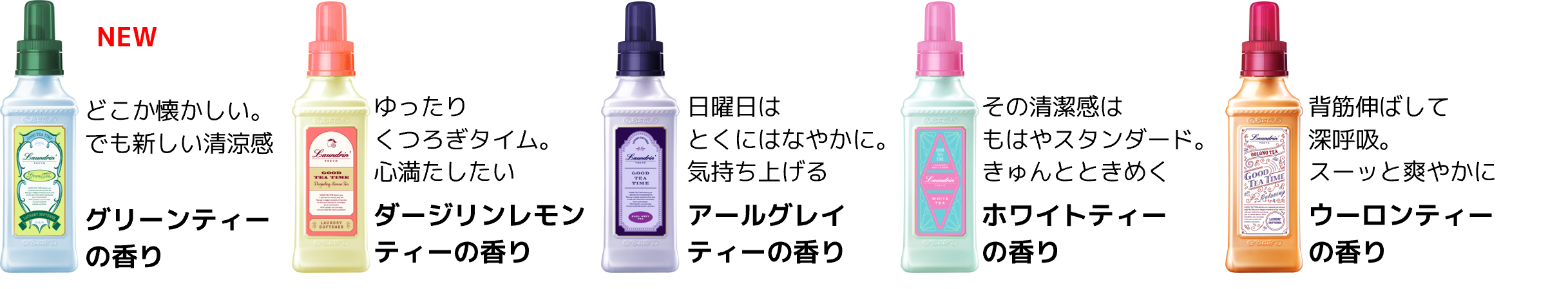 また、多くのお客様から「今後も継続してティーフレグランスを愛用していきたい」と、再販を望む声をいただき、2024年3月よりランドリン柔軟剤『グッドティータイム』を定番化しました。さらに、8月1日(木)より限定の香り「グリーンティー」を全国順次発売します。