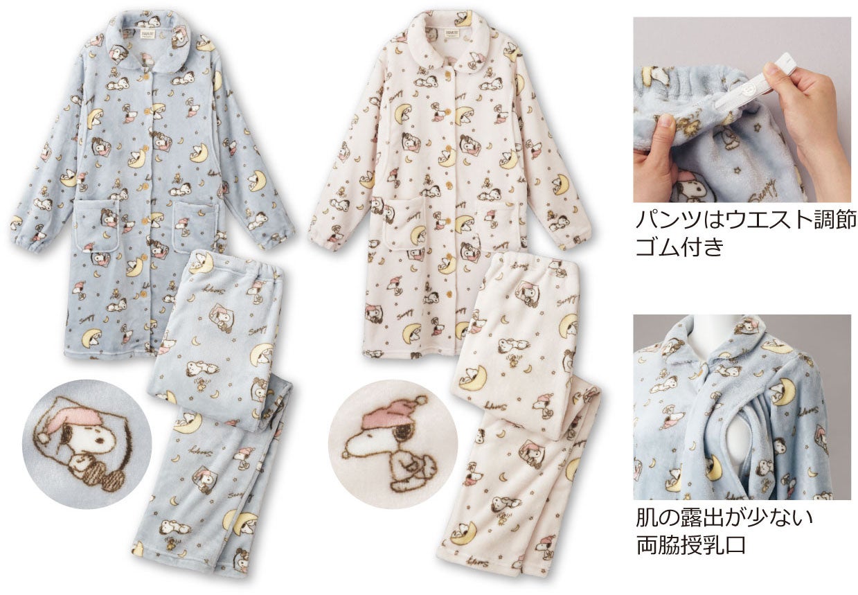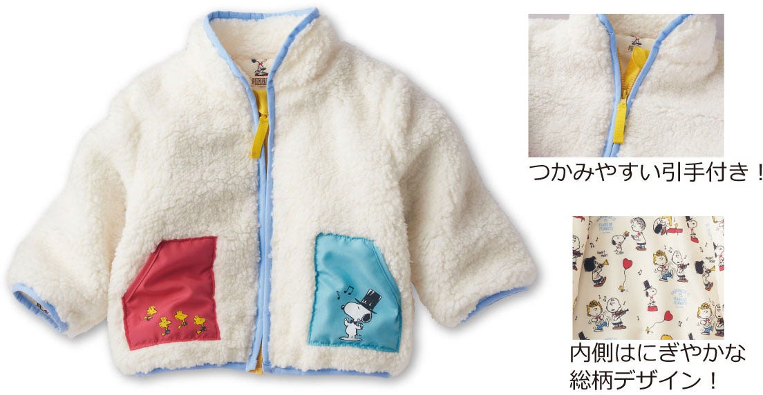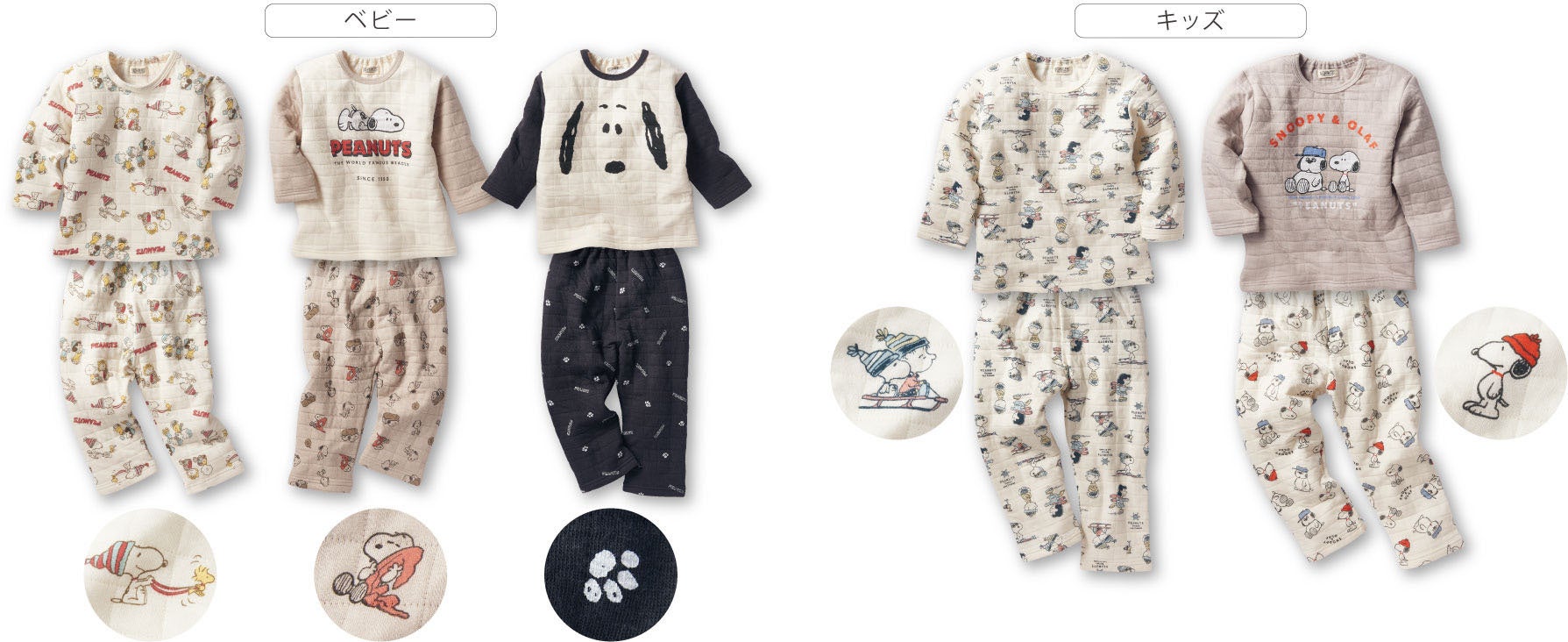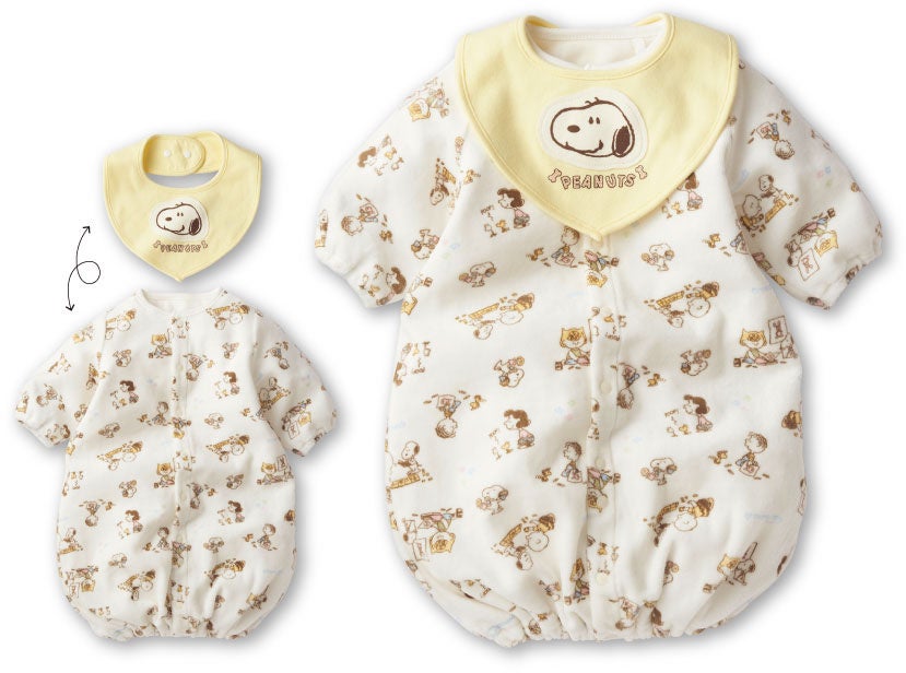 衣料品をはじめ、おもちゃやねんねグッズ、毎日の子育てに活躍するかわいい育児雑貨もご用意しています。スヌーピーフェアならではのかわいいアイテムを揃えました。その中から衣料品の一部商品をご紹介いたします。