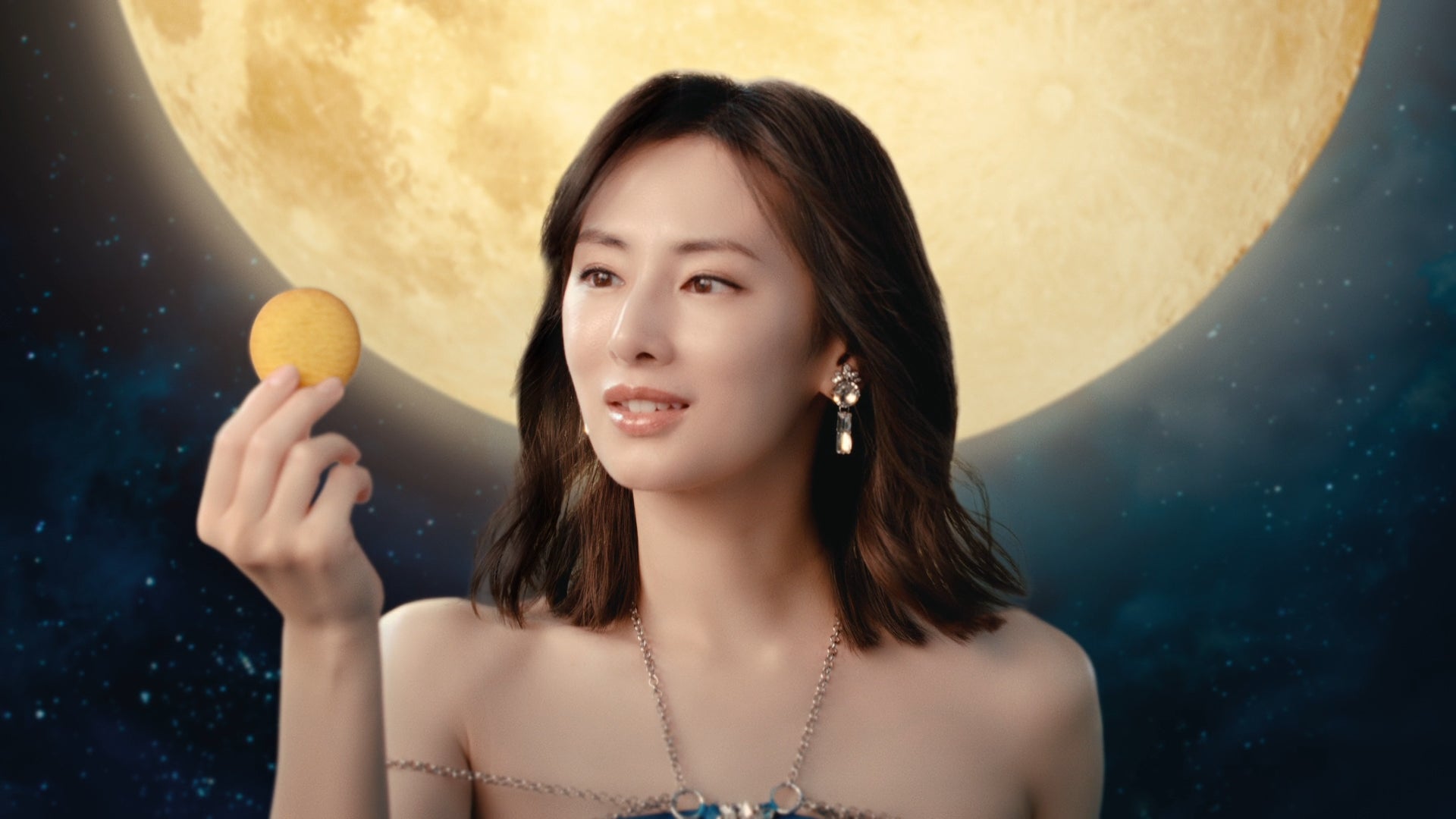 満月が煌々と輝く夜空の下、ムーンライトを見つめる北川景子さん。ムーンライトの特徴である「コクのある卵の味わい。サクサクほどけるおいしさ。」が表現されているだけでなく、その世界観に引き込まれ見ているだけでうっとりしてしまうCMになっています。
