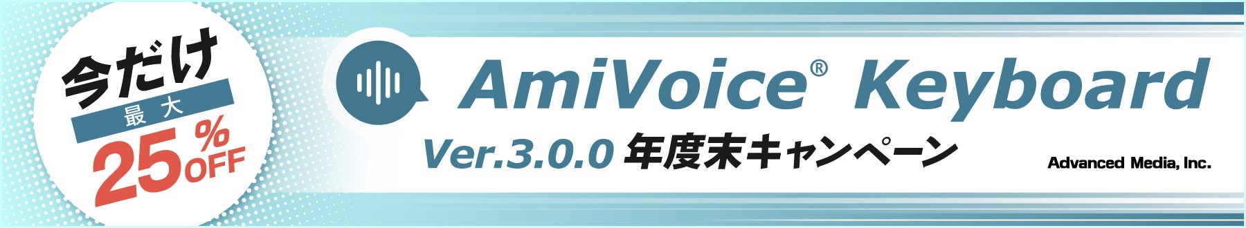 株式会社アドバンスト・メディア(本社:東京都豊島区、代表取締役会長兼社長:鈴木 清幸 以下、アドバンスト・メディア)は、この度、日頃のご愛顧に感謝の気持ちを込め、2024年2月にリリースした最新バージョン3.0.0の年度末値引きキャンペーンを開催いたします。
