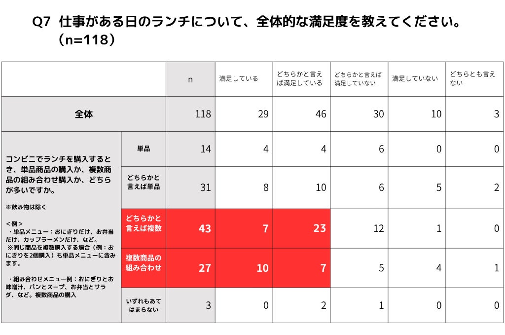 ここでは、コンビニランチ利用者の、ランチ満足度と購入内容の関係を掘り下げて分析していきます。