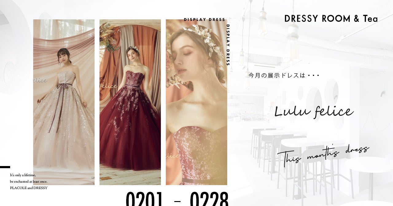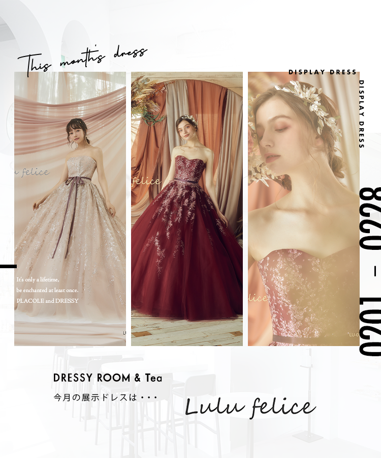 【DRESSY ROOM&Tea】2月のディスプレイドレスはバレンタイン仕様。Lulu felice(ルル・フェリーチェ)のウェディングドレスを期間限定でお届けいたします。