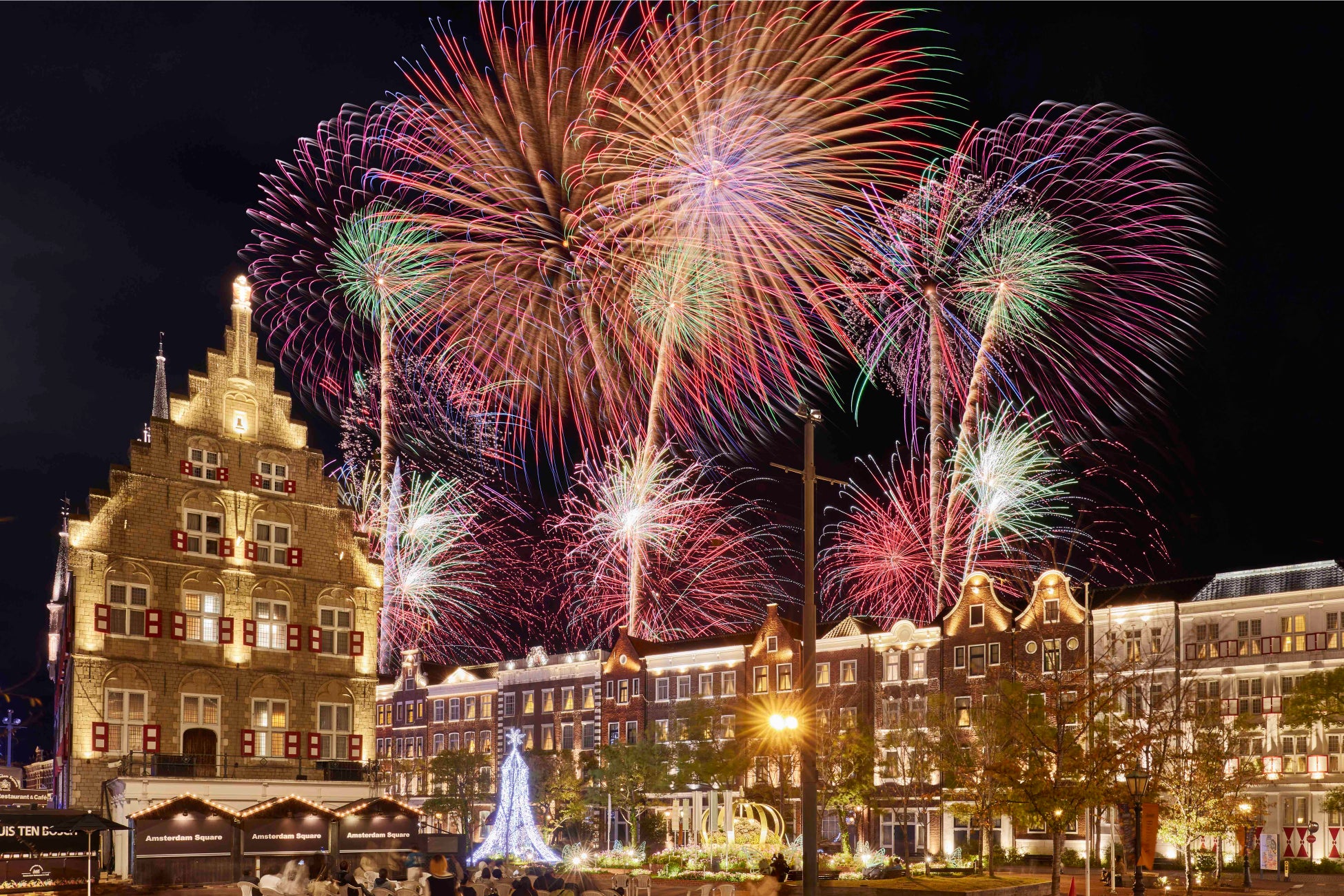 イルミネーションが輝くヨーロッパの街並みで、大迫力の花火をご覧ください。花火ショーを間近で見られる特別観覧前売り券はお早めに!