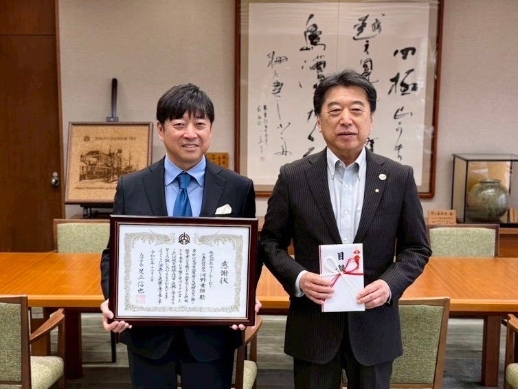 本感謝状は、当社が行った寄附による支援に対し、被災地の復旧・復興に資する取り組みとしてご評価いただいたものです。寄附受入式は2025年12月3日に大分市役所にて行われ、大分市長 足立信也様より感謝状を頂戴いたしました。