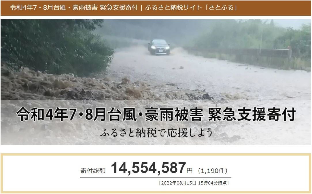 ■「令和4年7・8月台風・豪雨被害 緊急支援寄付サイト」掲載自治体