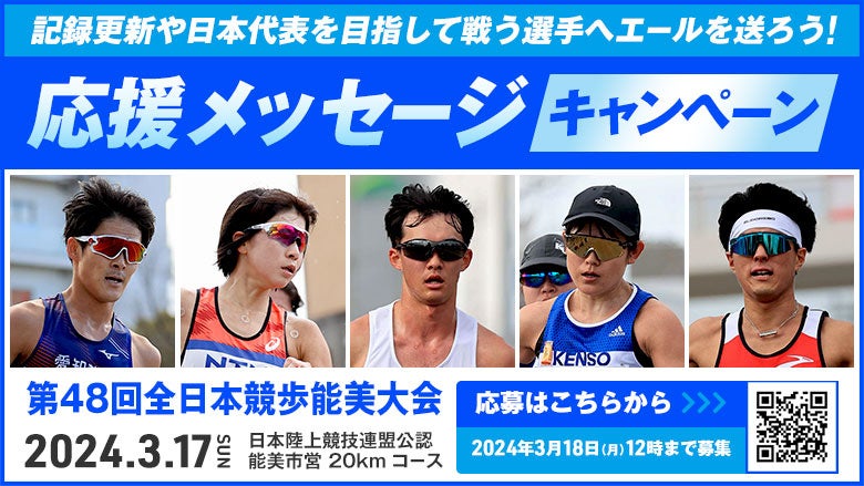 2024年3月17日(日)「第48回全日本競歩能美大会(https://www.jaaf.or.jp/competition/detail/1815/)」をライブ配信することが決定しました!