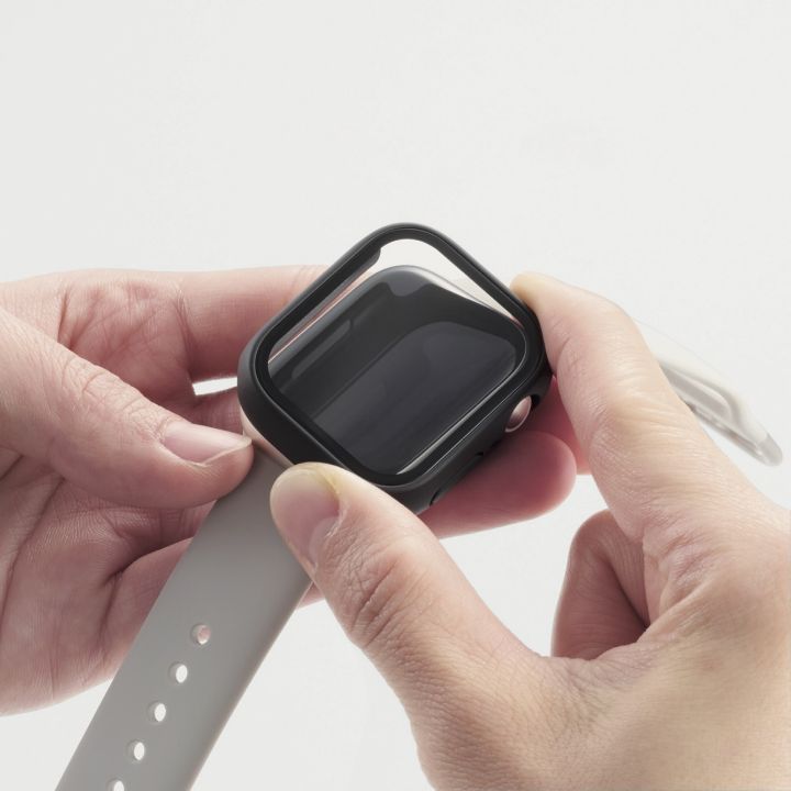 <Apple Watch 44mm用 フルカバーケース プレミアムゴリラガラス セラミックコート ブラック>