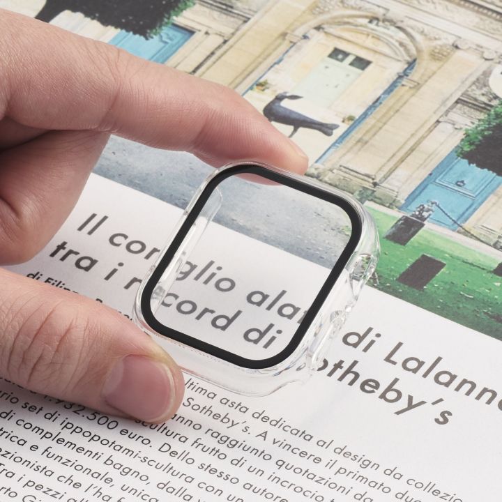 <Apple Watch 45mm用 フルカバーケース プレミアムゴリラガラス 高透明 クリア>