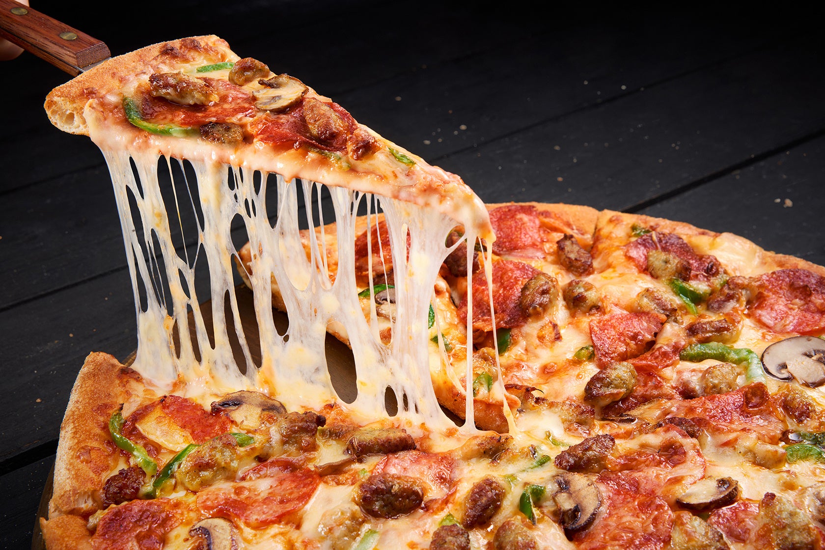 創業当時から愛され続けた看板商品が、モッツァレラチーズ&ペパロニとイタリアンソーセージが1.5倍で、より豪華に。ロングセラーの進化系です。