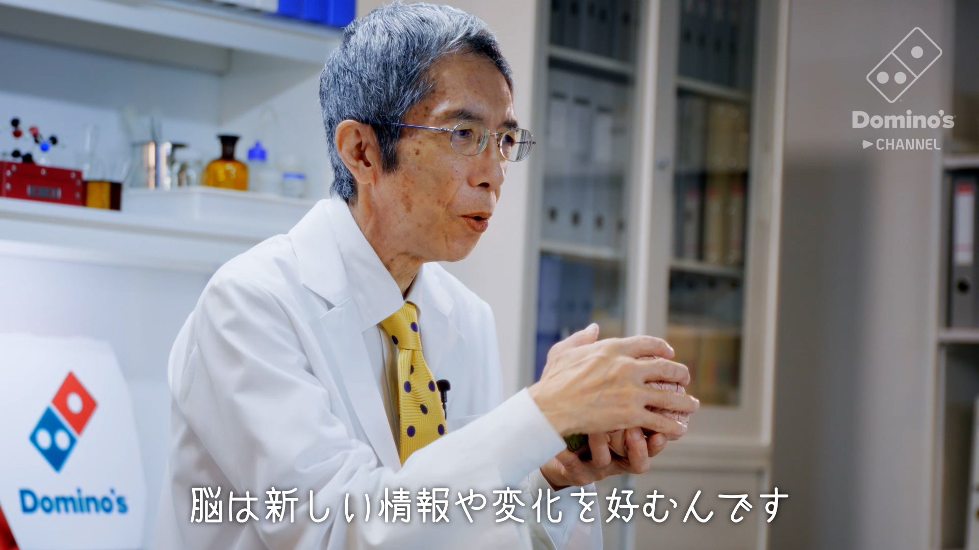 本WEB動画では、「たーーっぷりシリーズ」の140万食突破を記念し、脳科学者・澤口俊之先生にピザが脳に与える快楽や幸福感を脳科学的な視点から紐解いていただきました。澤口先生の解説によると、ピザは、わたしたちの脳を純粋な幸福感で支配するそう。ピザの色の組み合わせは脳の視覚野を刺激し、食べる前から期待感を高めます。さらに、脳は新しい情報や変化を好むため、様々な具材の味や食感、香りを一度に楽しめるピザは、脳に飽きさせない刺激を与え続けるのだそうです。