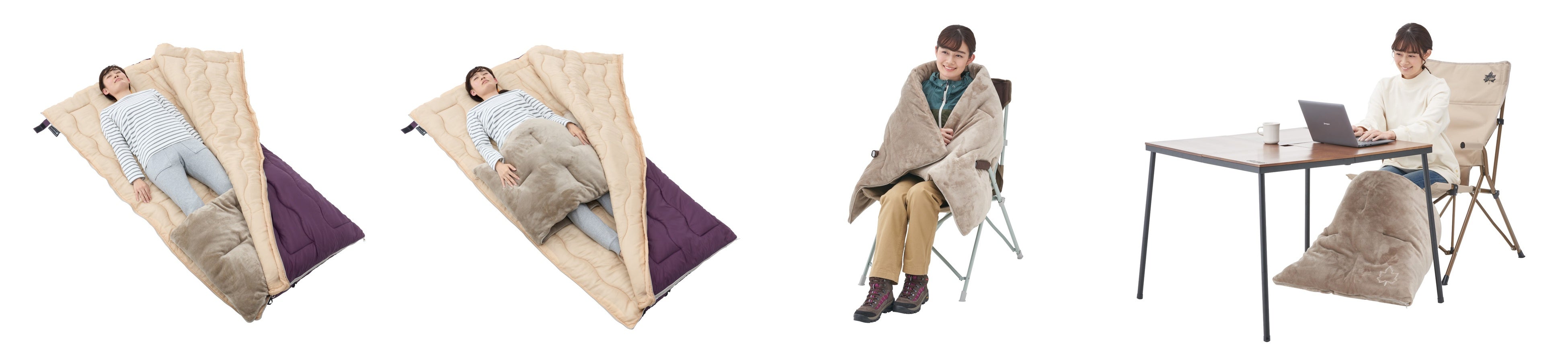ジップスライダーが2カ所ある「ダブルファスナー」採用でフレキシブルな温度調節が可能です。ドーナツ状にすればお腹周りなども温めることができるほか、広げて使えばブランケットや膝掛けにもなるので、様々なシーンで使用できます。また、「ダブルフェイスジップトップ」採用により、内側と外側のどちらからでもジッパーの開閉が可能です。