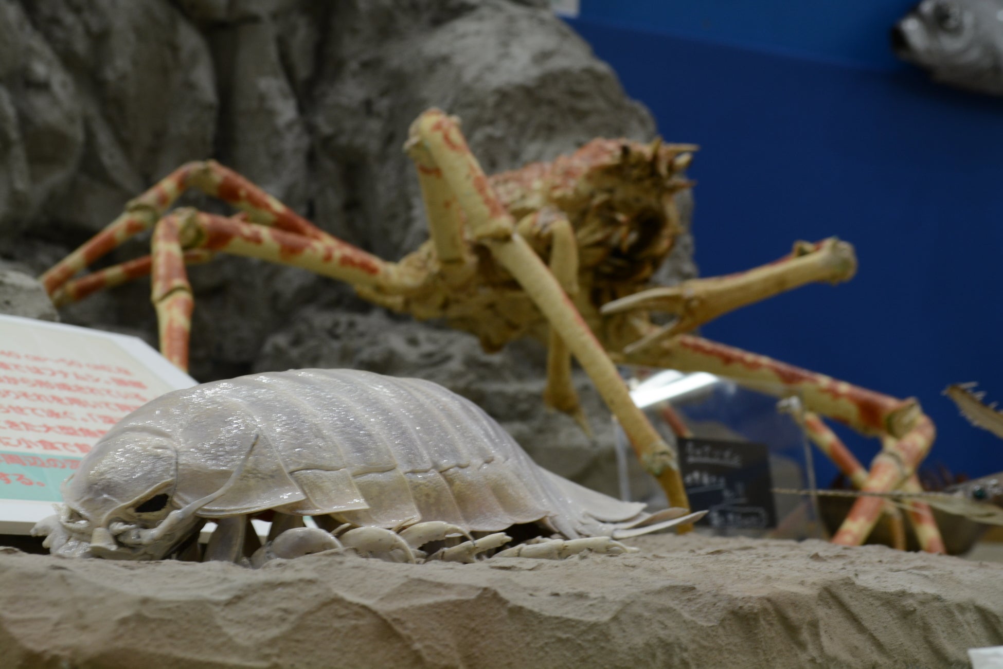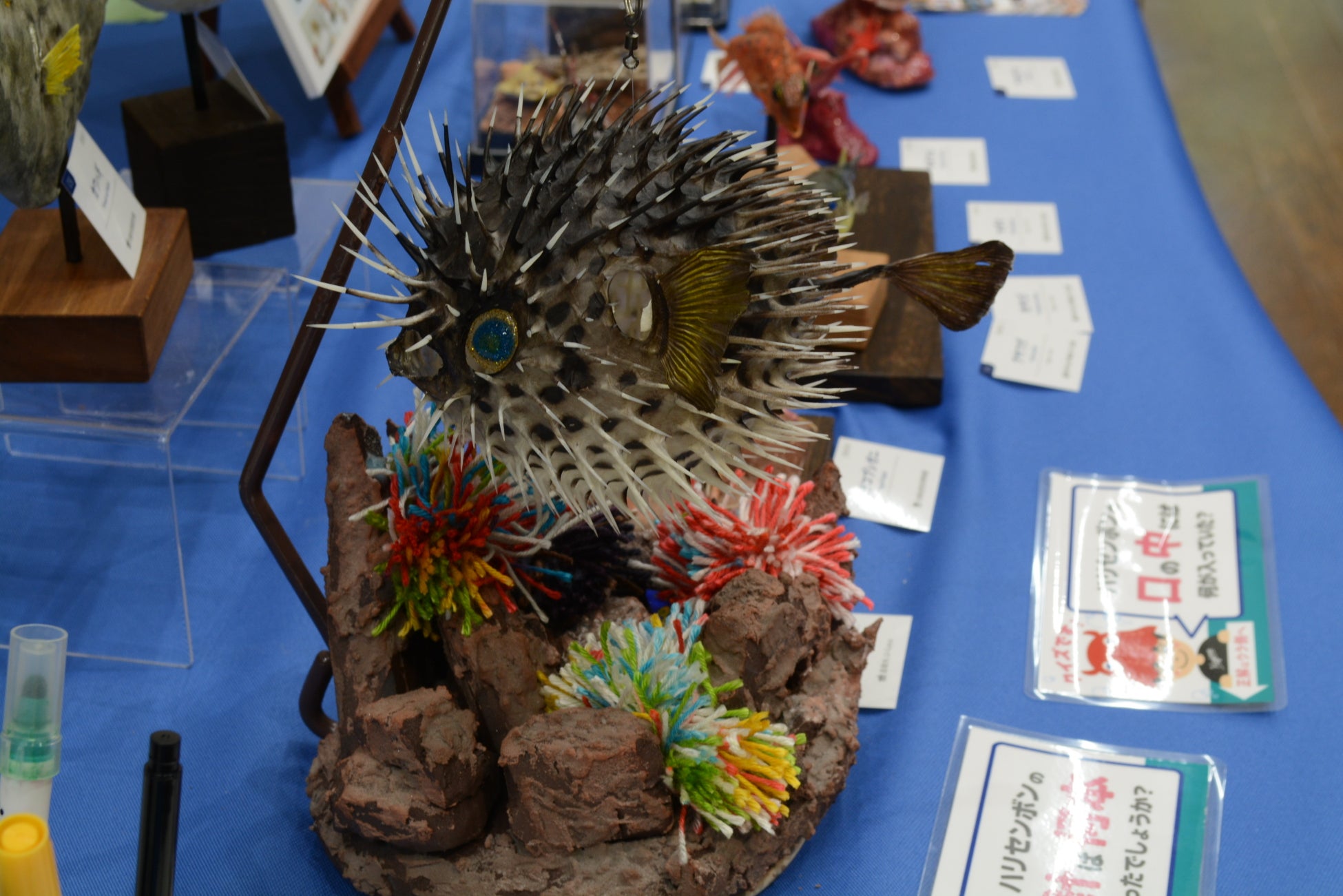 深海生物の標本を触れるコーナーやお魚博士の子供たちが作成したはく製や標本等も展示しています。