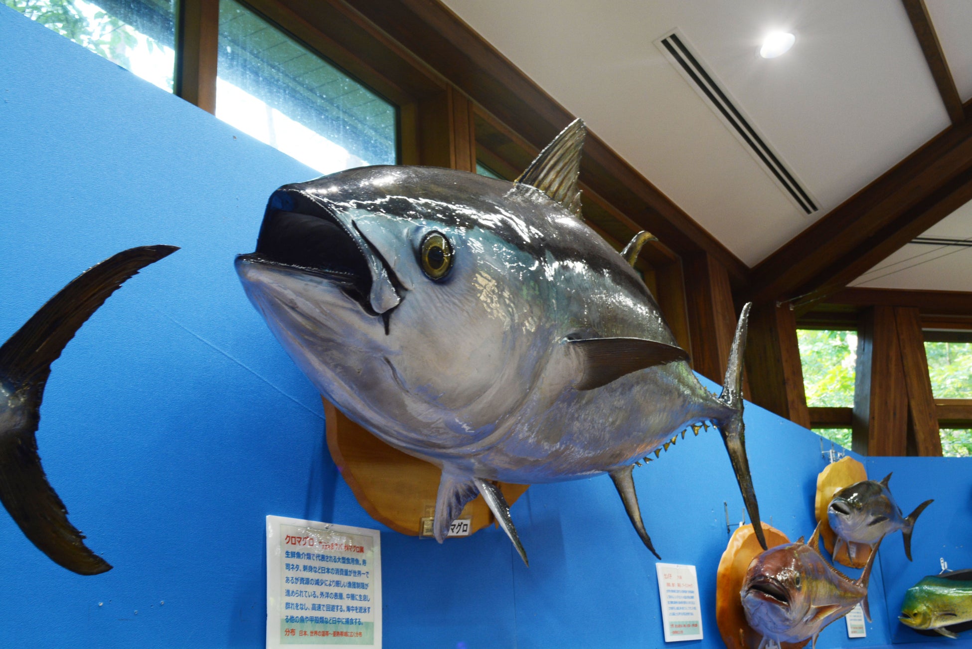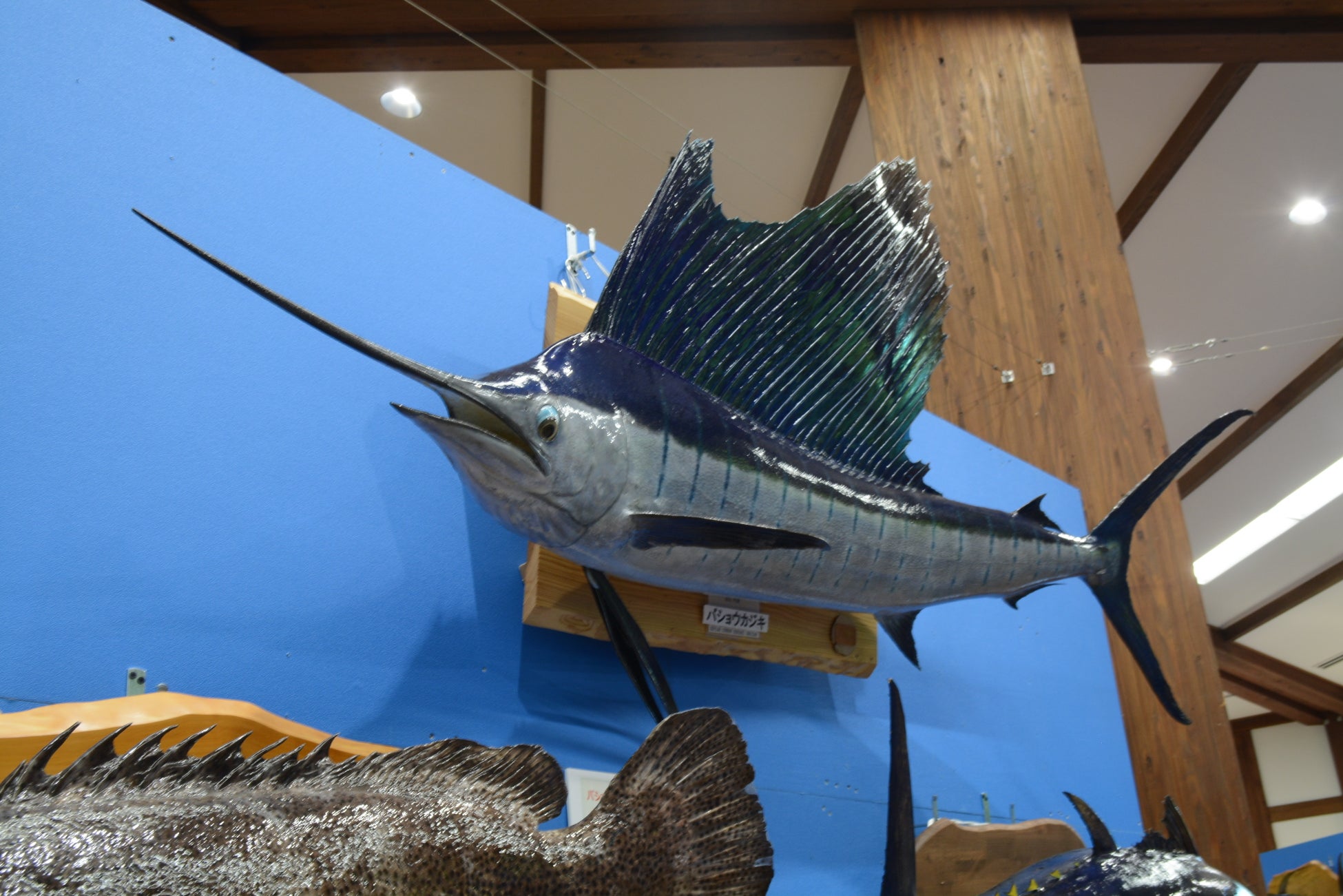 海水魚から淡水魚まで剥製や標本を約200魚種展示しています。マグロやカジキなどの体長2m以上の大きな魚のはく製や、リュウグウノツカイやダイオウグソクムシなどの深海生物のはく製や標本もご覧いただけます。また、シーラカンスやホオジロザメのレプリカなど普段見ることのない海の生き物の展示が数多くあります。
