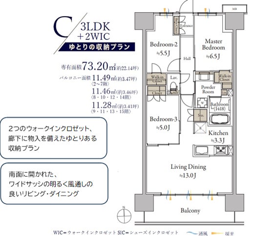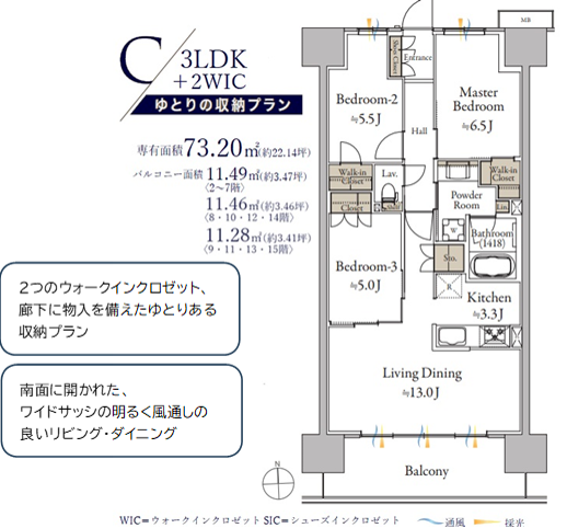 全邸南向きで陽当たりと開放感を満喫できる配棟、68.97㎡~85.88㎡の19タイプバリエーション。