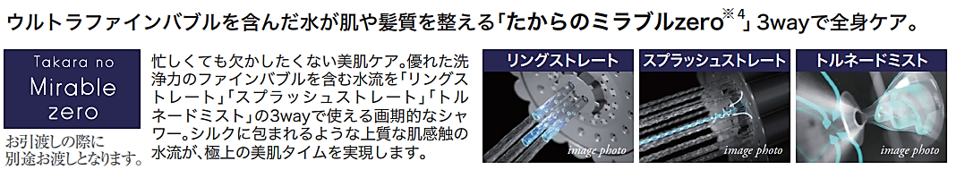 ※3.「たからのミラブルzero」シャワーヘッドは別途お渡しとなります。シャワーヘッドの交換はお客様ご自身でお取り付けをお願いいたします。※掲載のイメージフォトは販売対象物件との関係性はございません。2018年6月株式会社サイエンス調べ。※4.車種等には制限があります。※5.ペットの種類・大きさ・頭数などに関しては制限があります。