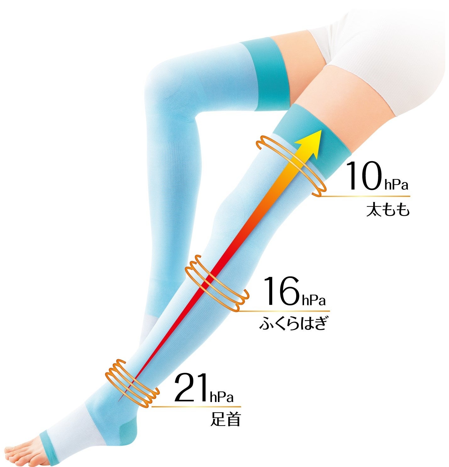 (足首21hPa、ふくらはぎ16hPa、太もも10hPa)