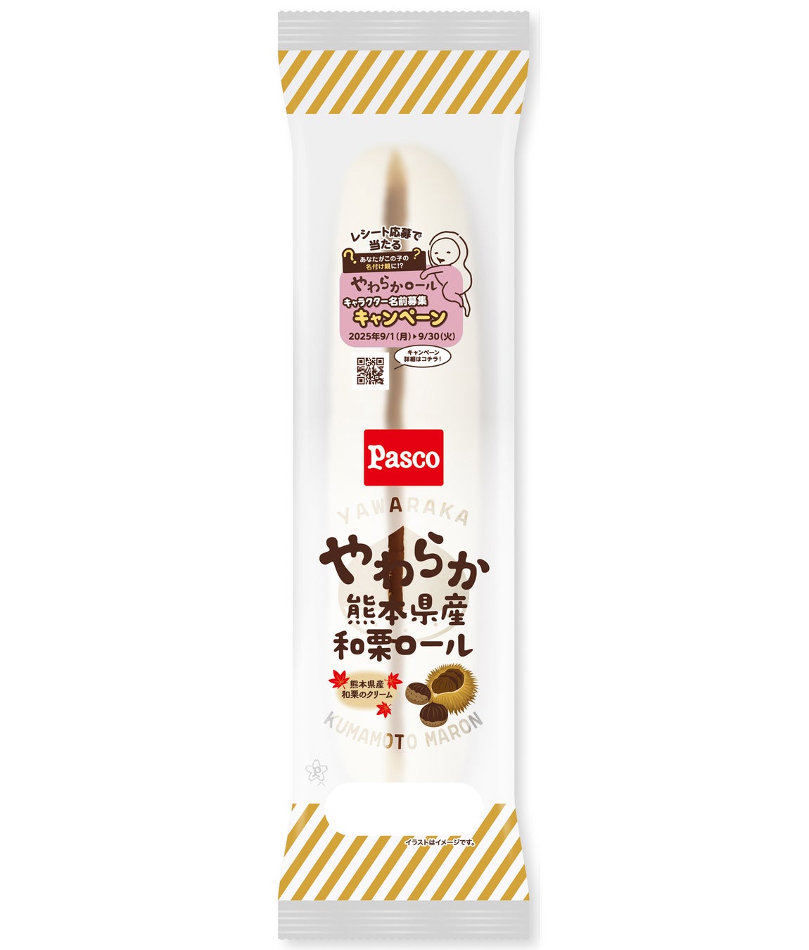 敷島製パン株式会社(Pasco)は、「やわらか熊本県産和栗ロール」を2025年9月1日(月)より、関東・中部・関西・中国・九州地区にて発売します。