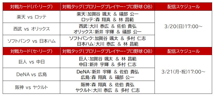 ※3月20日(日)のパ・リーグ開幕戦3試合を配信