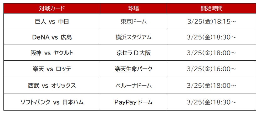 <プロ野球は3月25日(金)にいよいよ開幕!お見逃しなく!>