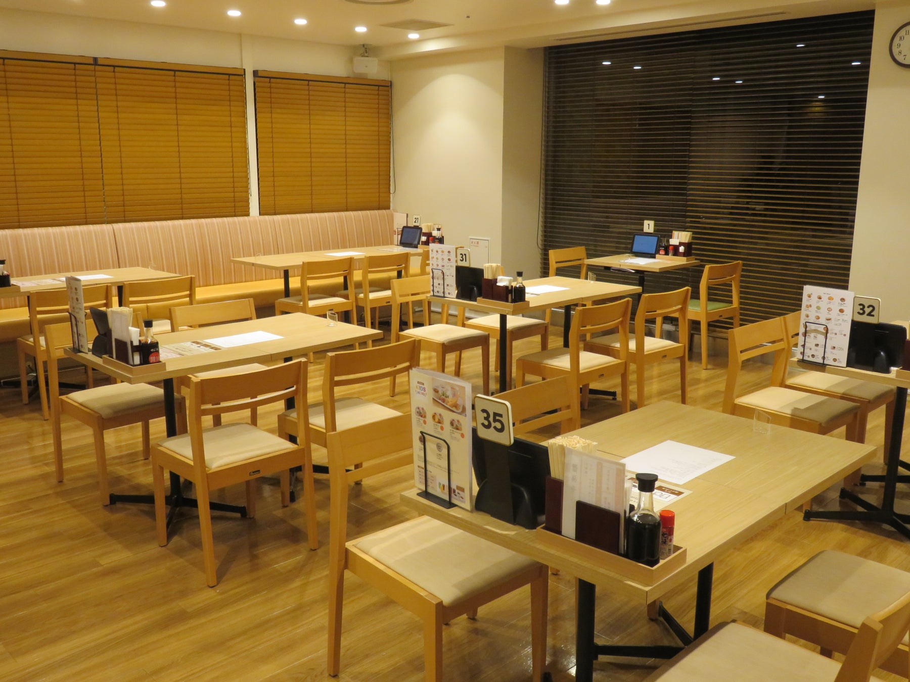 特長としては、ゆっくりとメニューを選んでいただけるよう、テーブルに設置したタブレット端末からのオーダーシステムを採用。ドリンクバーを設置することで、くつろぎの時間を過ごしていただけるようにしました。車椅子のままご利用いただけるよう、昇降式テーブルの設置や、店内の通路、ウェイティングのスペースを他の「やよい軒」よりも広めに設計し、スムーズな動線確保に努めました。また、テイクアウトメニューも販売いたします。