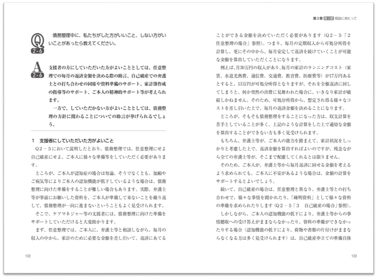 債務整理に関する具体的なQ&Aを読むことで、実際に利用者が何をすべきか、ケアマネジャーはどう動けばいいかが整理できる。