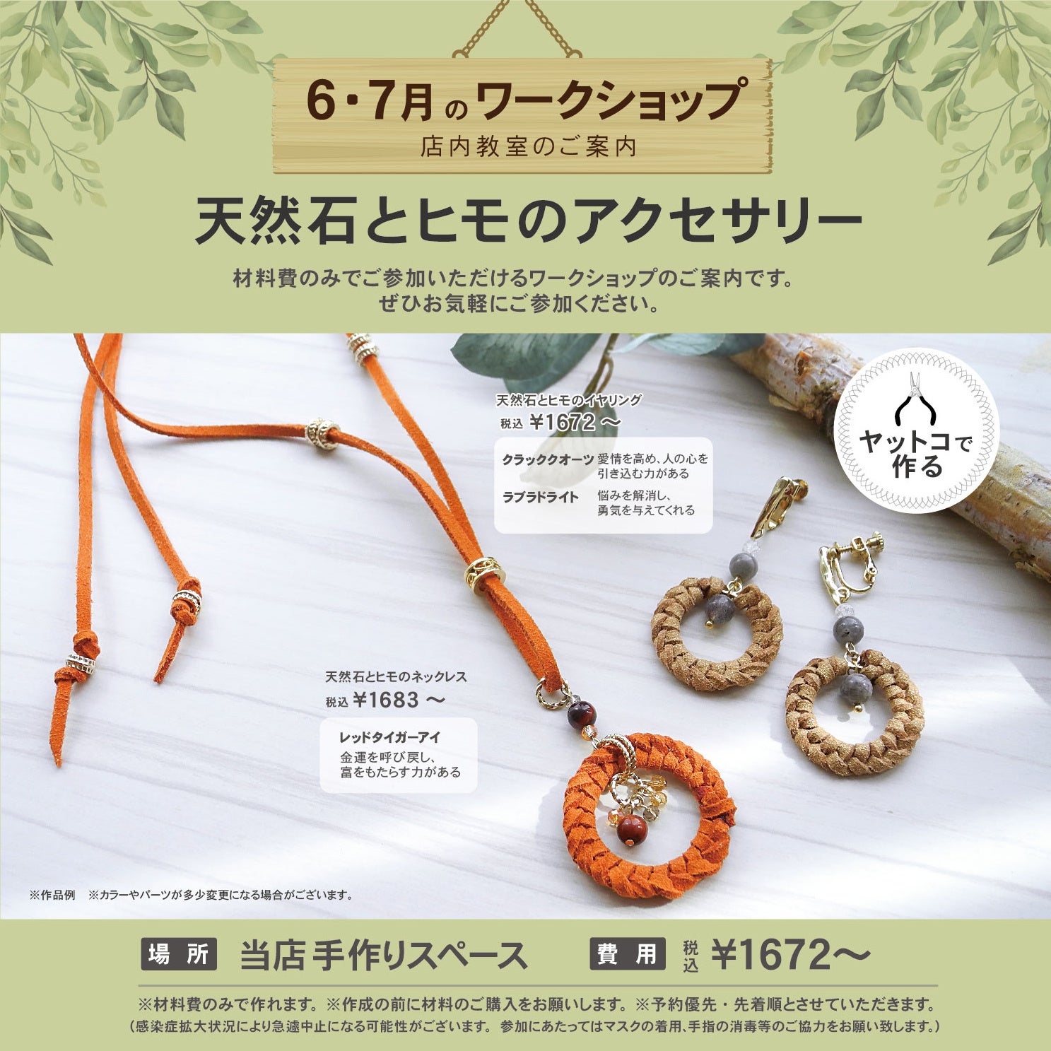 ビーズ&アクセサリーパーツショップPARTS CLUB。材料費だけで参加できる「ワークショップ」6月7月は、和菓子アクセサリーと天然石とヒモのアクセサリー