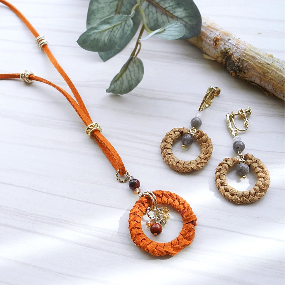 合成紐と天然石を使用したオリジナリティあふれるアクセサリーです。