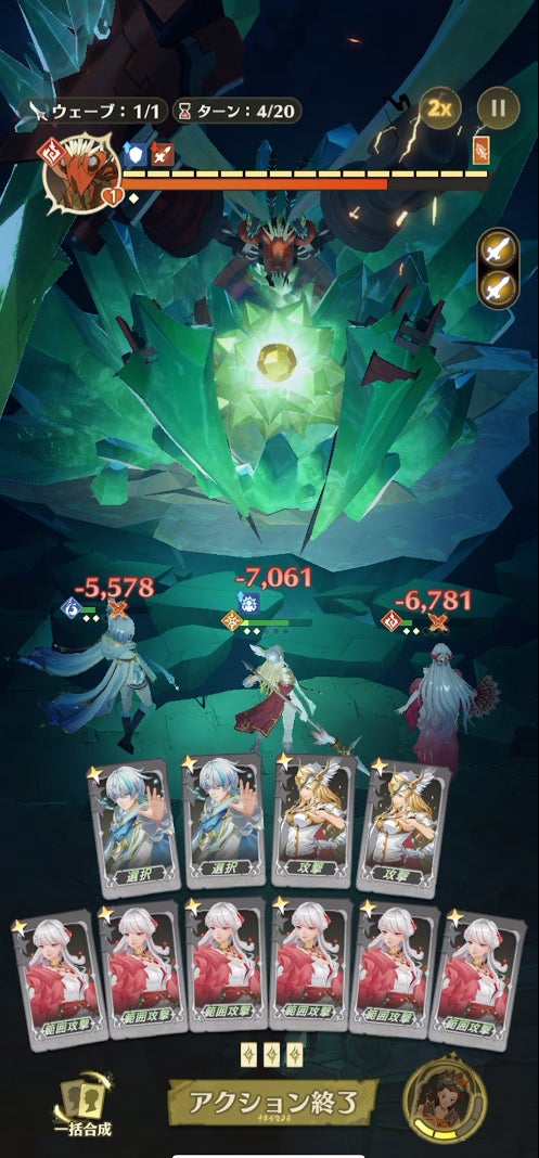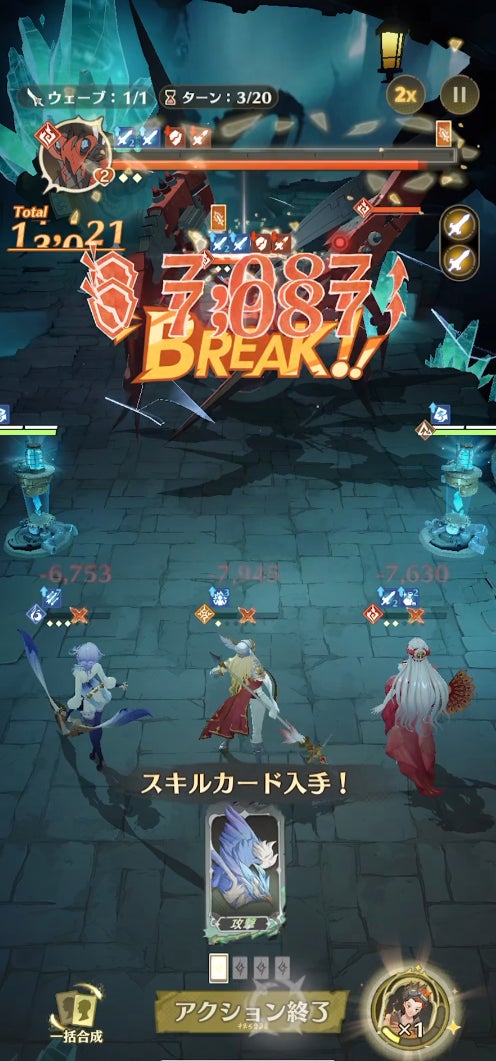 ゲームは、敵味方交互に行動するターン制バトルを採用しています。プレイヤーは、各キャラクターのスキルカードを活用し、キャラクターのステータスや特性を考慮して自分だけの冒険チームを編成し、迫りくる強敵や脅威に立ち向かっていきます。シンプルなバトル操作により、ターン制RPGに不慣れな初心者でも気軽にプレイいただけます。
