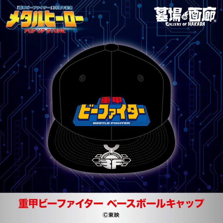 メタルヒーローシリーズの人気作『重甲ビーファイター』から、印象深いタイトルロゴを立体的な刺繍で施したオリジナルキャップが登場!重厚(重甲)感あふれるロゴをフロントに再現し、バイザー部分にはビーファイターのエンブレムロゴがホイルシールとして貼付!甲虫並に防御力アップだ!