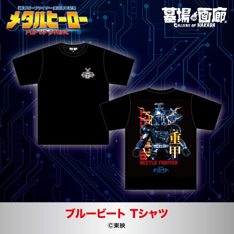 メタルヒーローシリーズの人気作『重甲ビーファイター』のオリジナルTシャツをリリース!その着心地、まさにインセクトアーマー!思わず「重甲!」と叫びながら着たくなる、重厚感あふれるハイクオリティなTシャツ!背面のブルービートは脅威の極厚シルクスクリーン仕様!