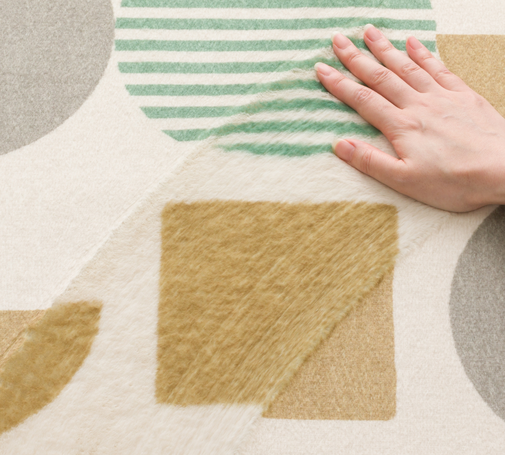 この度、ニトリではそんな模様替えにおすすめのデザインラグを新発売しました。人気のファータッチのなめらかな肌ざわりの生地に、くっきりとしたプリントのデザインが特徴です。今までファータッチシリーズでは無地のアイテムしか取り扱いがありませんでしたが、初めて柄デザインのアイテムを追加しました。