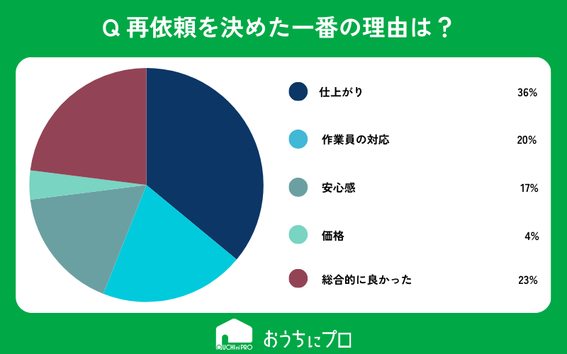 再依頼の一番の決め手になったのが「仕上がり」「作業員の対応」「総合的に良かった」といった点。