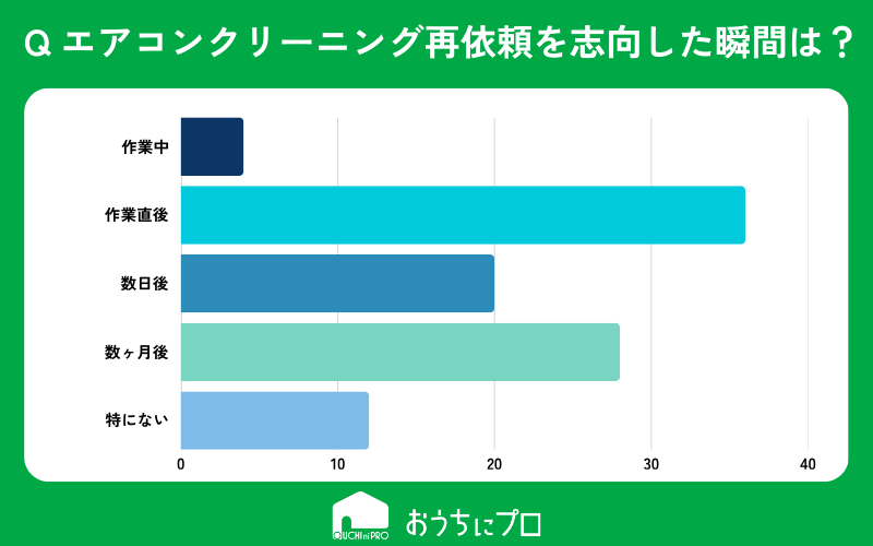 エアコンクリーニングの再依頼を決めた瞬間は「作業直後」もしくは「数ヶ月後」。