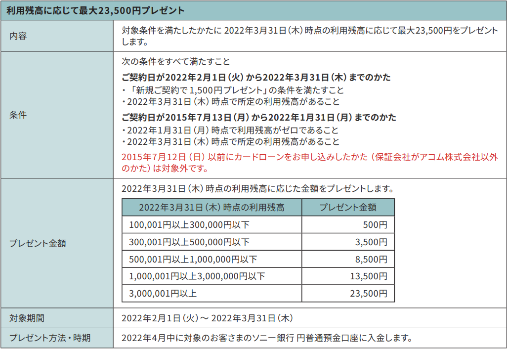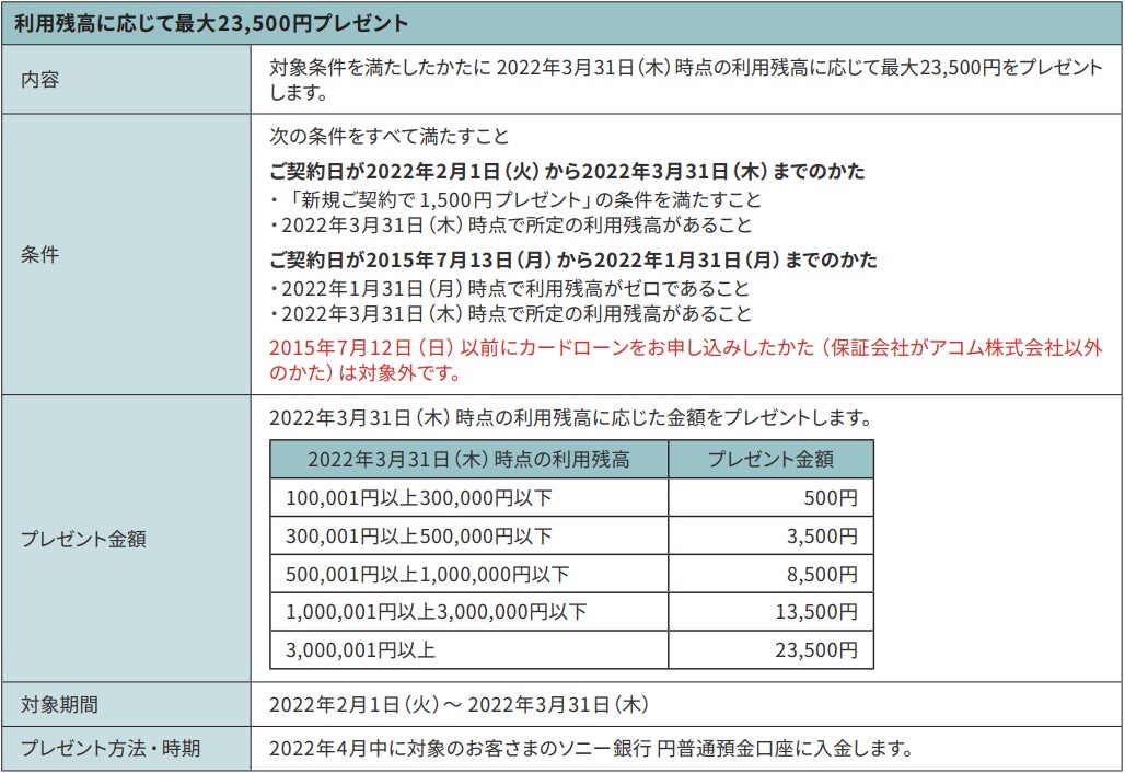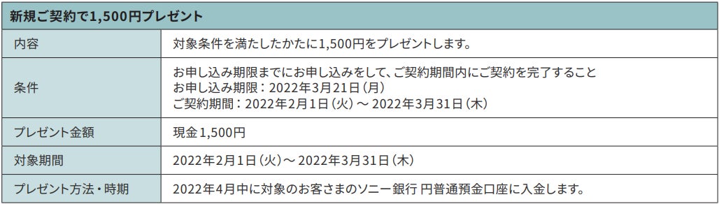 ソニー銀行株式会社(代表取締役社長:南 啓二/本社:東京都千代田区/以下 ソニー銀行)は、2022年2月1日(火)より、「新生活応援!カードローンで最大25,000円プレゼント!」キャンペーンを実施しますのでお知らせいたします。