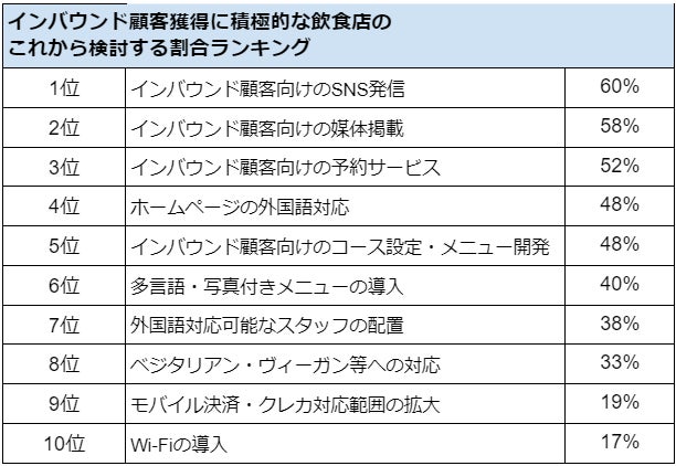 ■インバウンド顧客獲得に積極的な飲食店の、これから検討したいこと1位はSNSでの情報発信