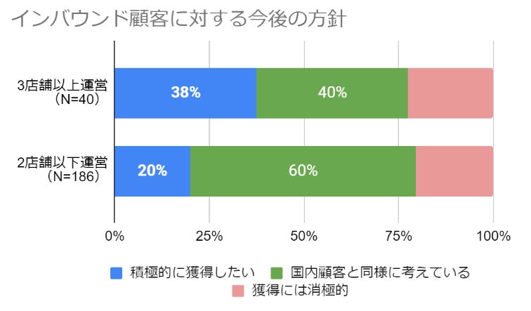 また、特に3店舗以上運営する飲食店の方がインバウンド獲得に意欲的であることがわかります。