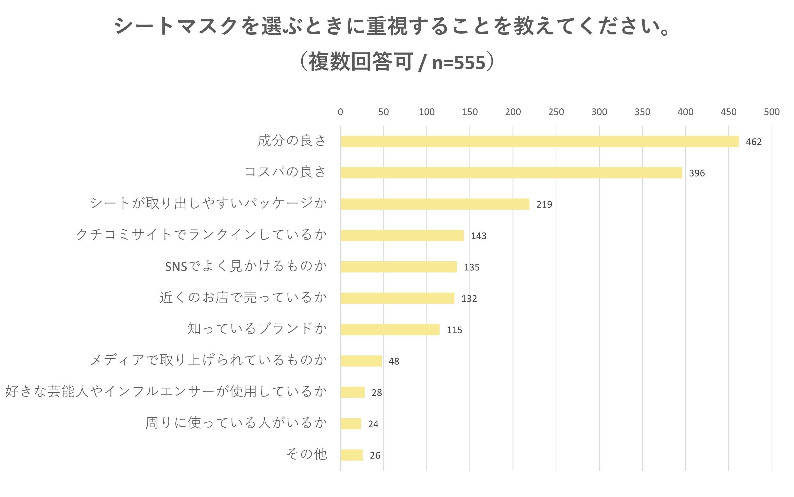 ・シートマスクを選ぶ時に重視することは、巷での評判以上に“商品自体の良さ”へ多くの回答が集まる結果に。