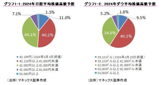 特別調査の1つ目として、2024年の日経平均株価、ダウ平均株価の高値予想を調査しました。