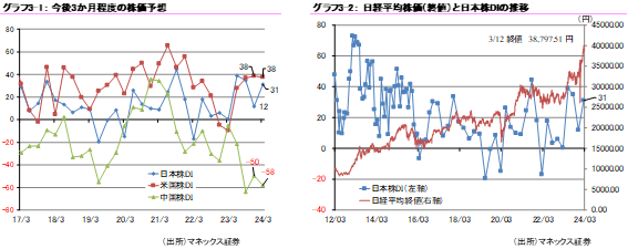 【日本株DI】(2023年12月)12 → (2024年3月)31(前回比 +19ポイント)