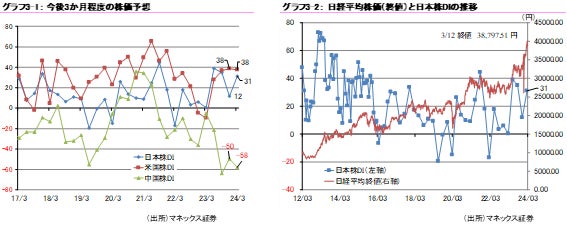 【米国株DI】(2023年12月)38 → (2024年3月)38(前回比 ±0ポイント)