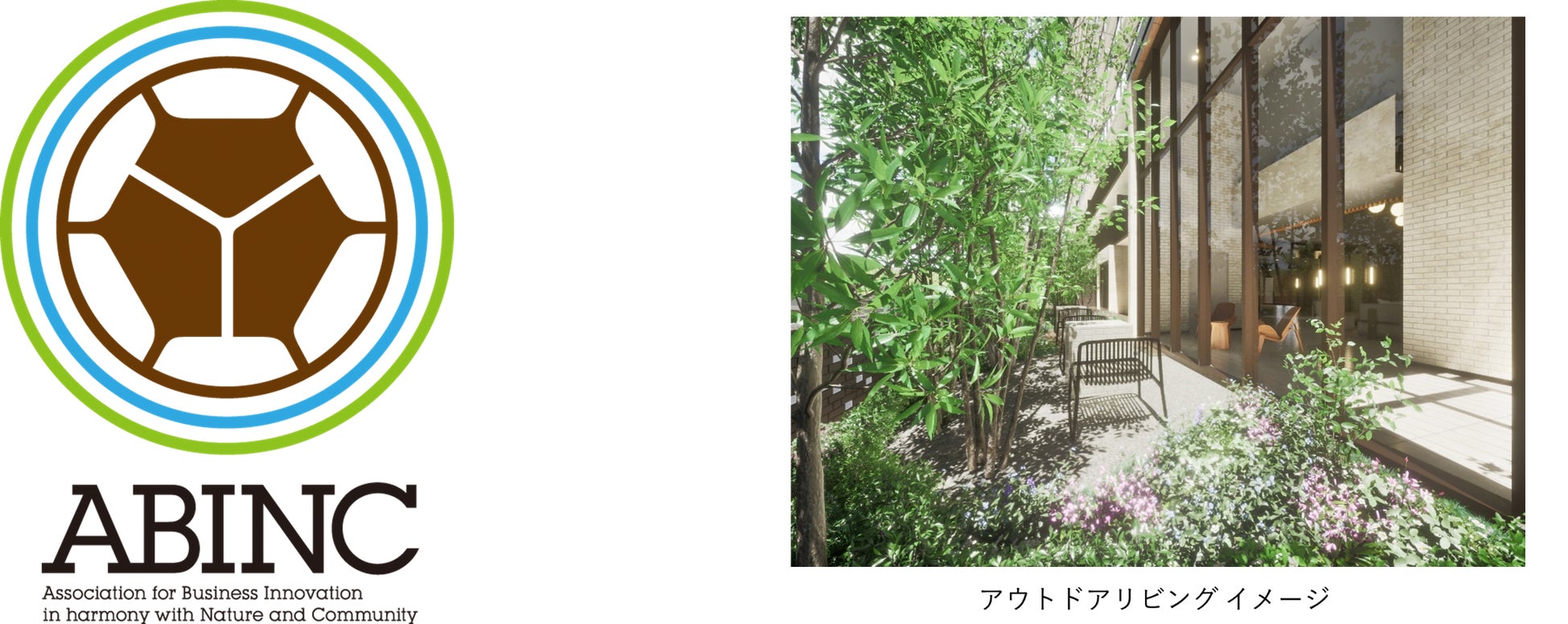 ABINC認証は、「一般社団法人いきもの共生事業推進協議会」が生物多様性の保全と自然と共生する世界の実現を目標に、いきものとの共生を実現できる環境づくりや維持管理について評価した物件に与えられます。