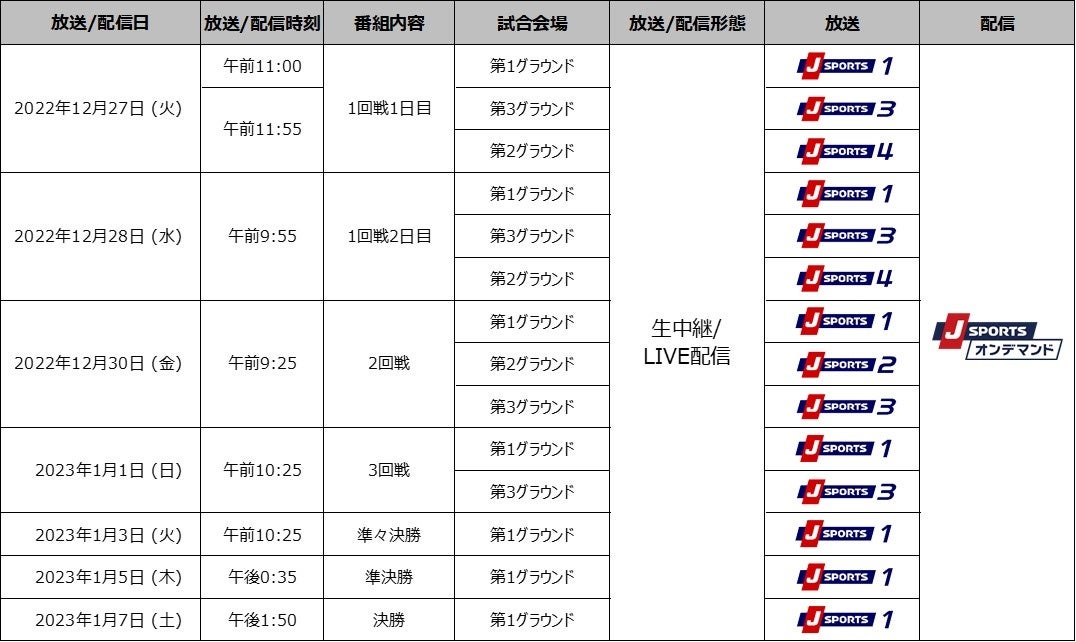 国内最大4チャンネルのスポーツテレビ局、株式会社ジェイ・スポーツ(本社 東京都江東区、代表取締役社長 長谷 一郎、以下「J SPORTS」※1)は、12月27日(火)から2023年1月7日(土)にかけて東大阪市花園ラグビー場で開催される「第102回全国高等学校ラグビーフットボール大会」の全試合を生中継いたします。また、PC、スマホ、タブレットで見られる動画配信サービス「J SPORTSオンデマンド※2」でも全試合をLIVE配信いたします。