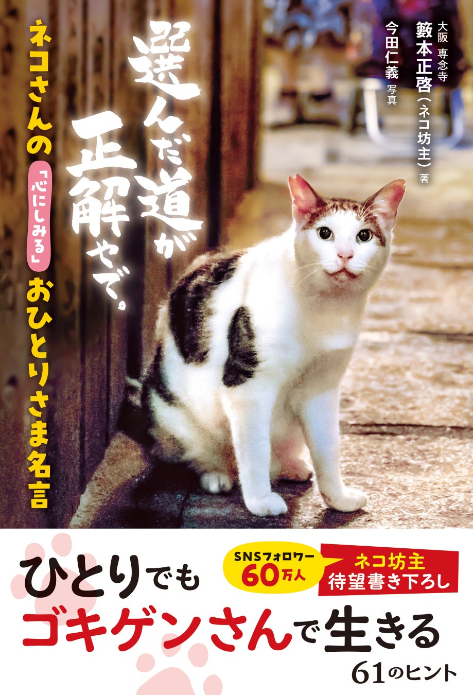 SNSフォロワー60万人の人気僧侶「ネコ坊主」こと籔本正啓さんによる待望の新刊『ネコさんの「心にしみる」おひとりさま名言』(双葉社)は、著者初の書き下ろし。ライフワークである見守り活動中に出会った地域ネコさんに、「ひとりでもゴキゲンさんで生きるコツ」をタップリ教わる一冊です。
