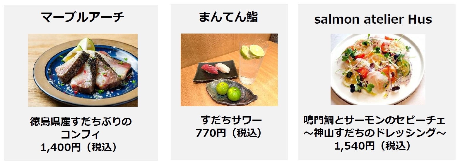 なると金時、すだちを使用したメニューが、各参加店舗