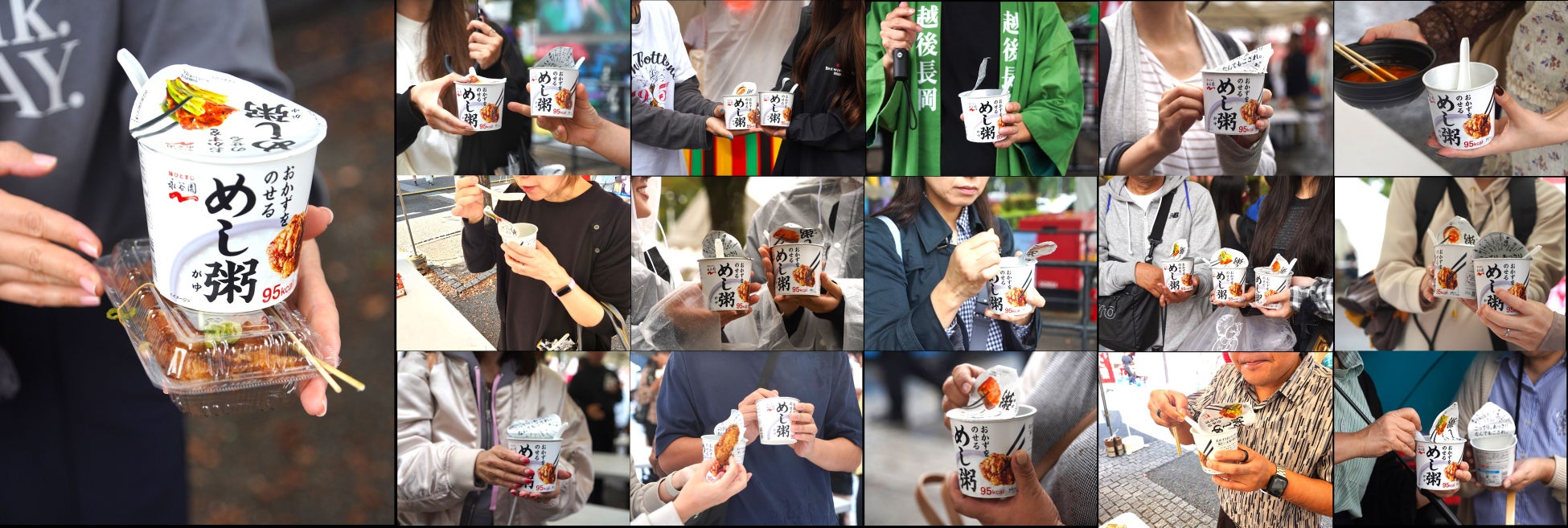 お客様に、めし粥が「おかずと一緒に楽しめる新しい主食である」ことを体験いただきたくため、全国各地のグルメメニューが集まる「楽天食いしんぼう祭」に出展、商品を無料配布いたしました。