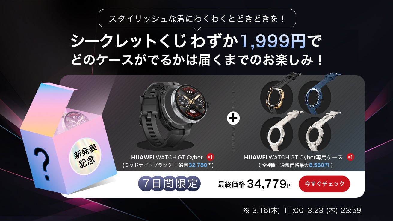 HUAWEI公式サイトにて、『HUAWEI WATCH GT Cyber』専用ケースのシークレットくじを開催!