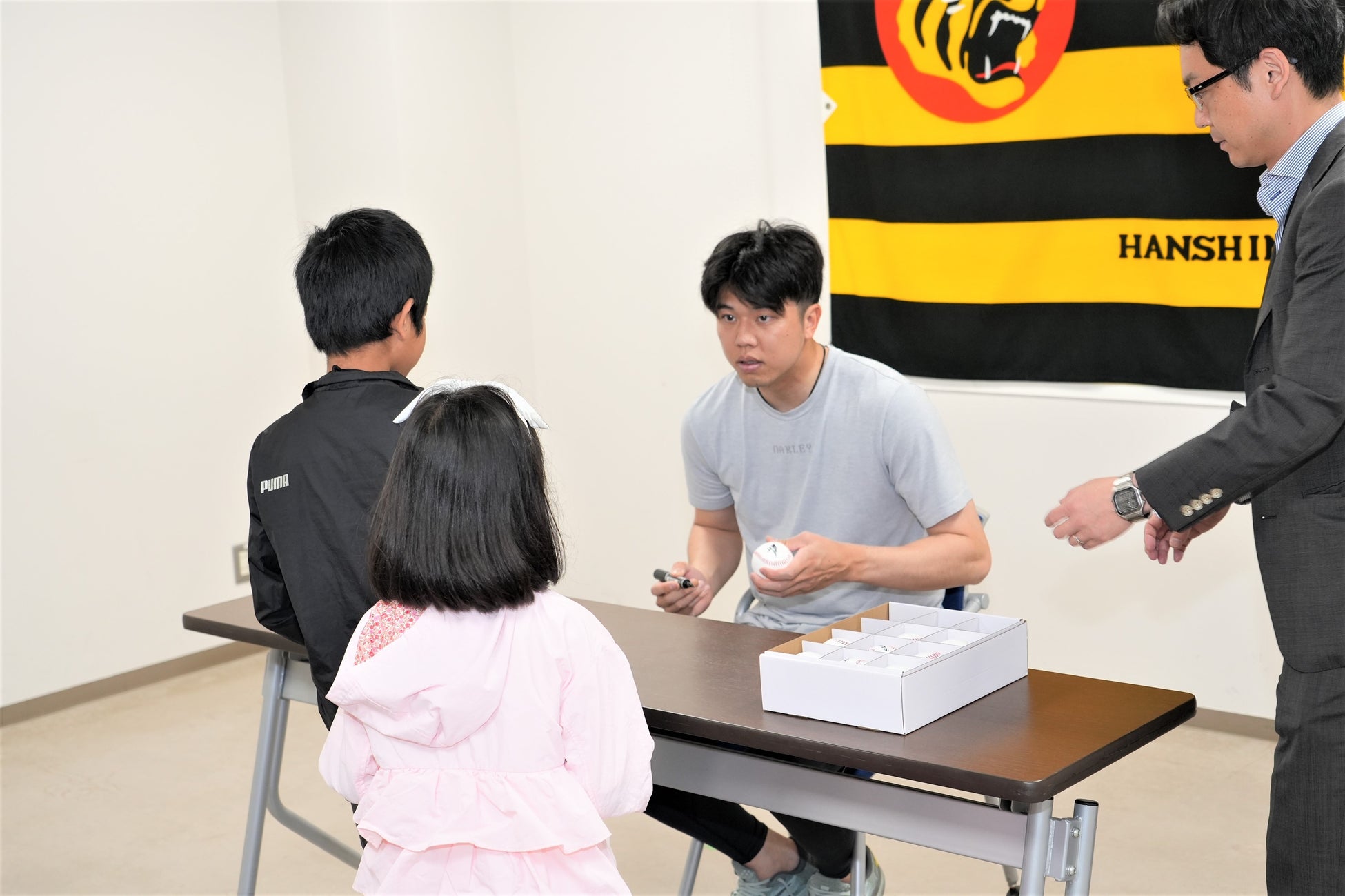 阪神タイガースの選手1名から直接サインボールがもらえる選手サイン会には、昨年日本代表の侍ジャパンにも選出され阪神タイガースの先発陣の柱である才木浩人投手が登場し、選手の登場を今か今かと待ち望んでいた参加者からは「わあっ!」という驚きと歓喜の声がこぼれました。