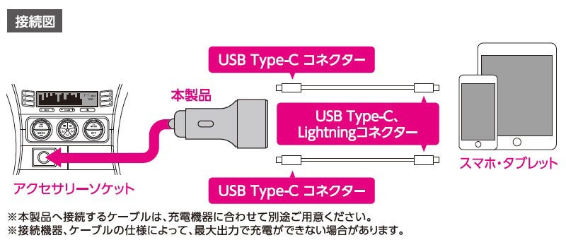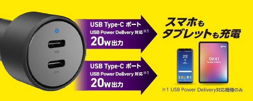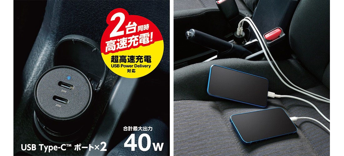 車でスマートフォンやタブレットを2台同時高速充電!USB Power Delivery(40W)対応のUSB-C×2ポート搭載シガーチャージャーを新発売